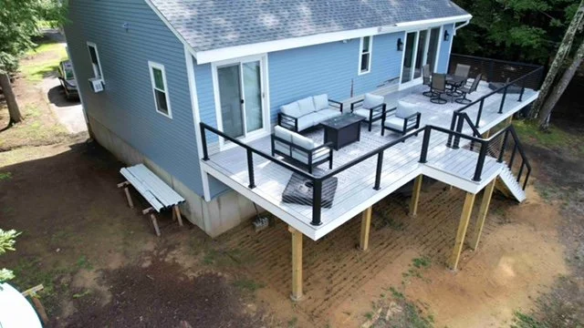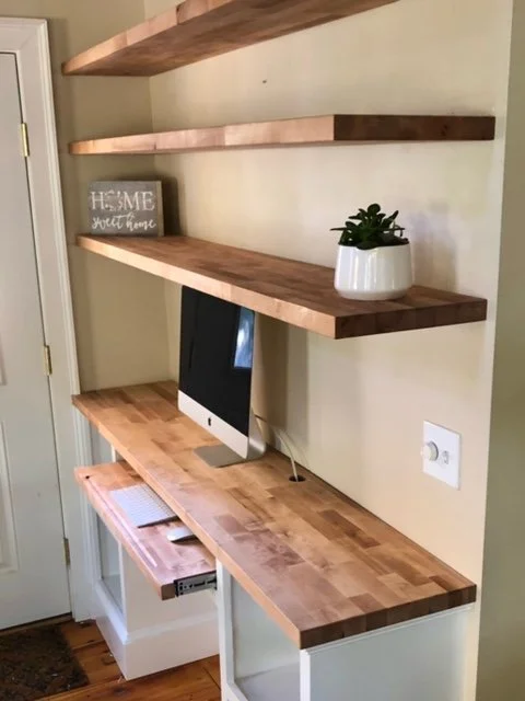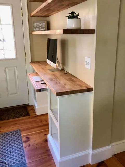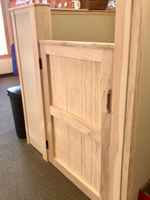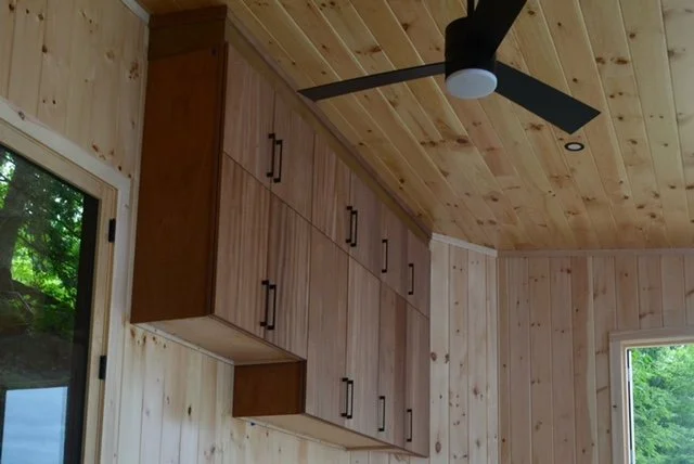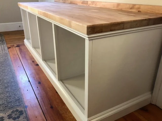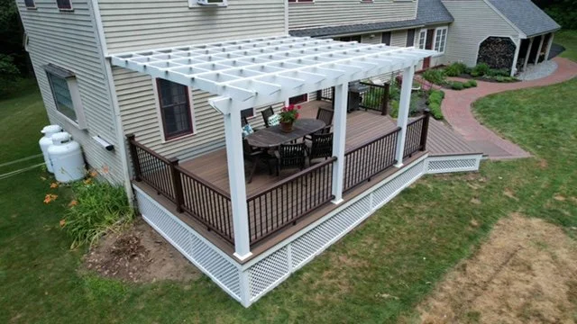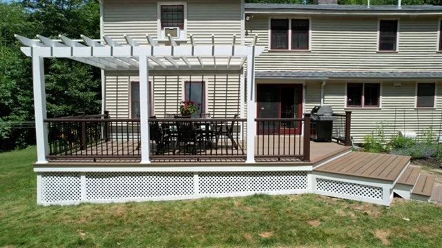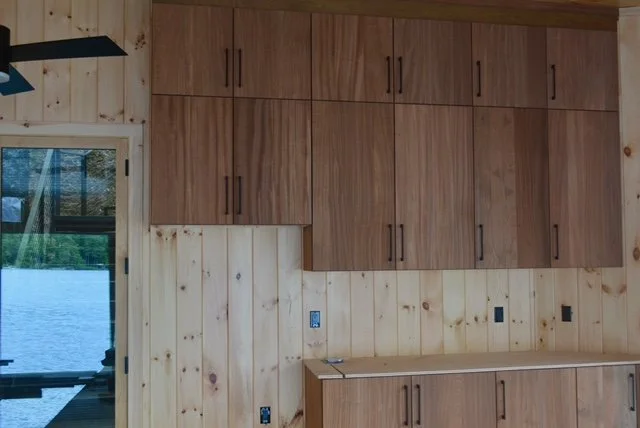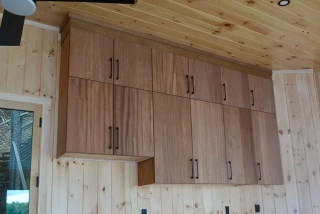 Site built Mahogany Cabinets Site built entry bench/ office desk handmade door/bathroom for childcare center pvc Pergola/ composite Decking new deck build on waterfront
